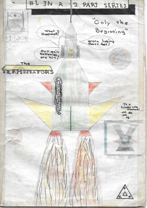 The year is 1987. I loved Transformers, and I loved comic books, so I decided to do my own stories. I drew these original comics on light-green, 6x9 steno notebook paper. I taped the pages together then stapled them like comic books.